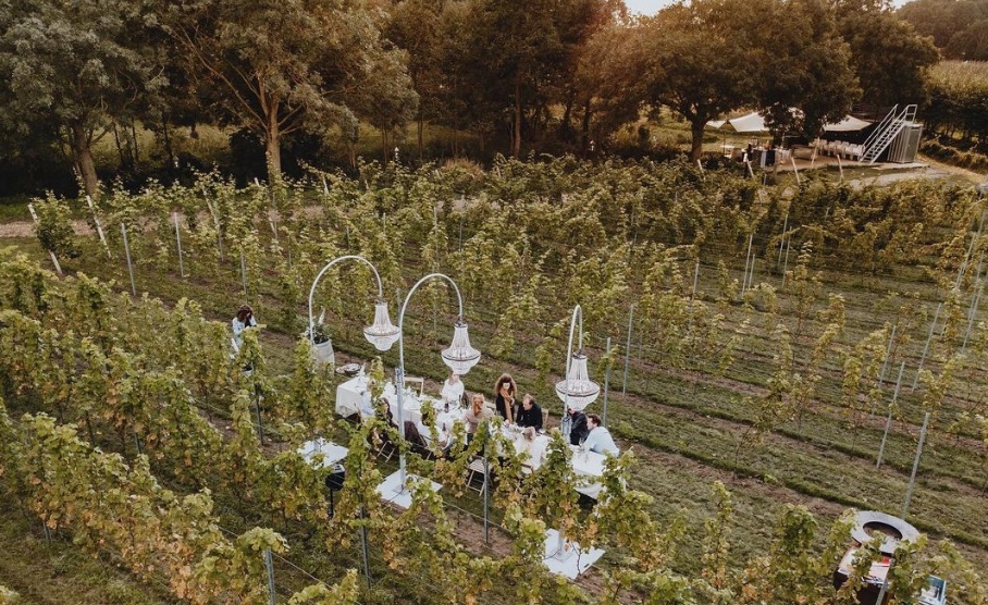 A Tuscany wedding is the dream of many. The climate is fantastic. Breathtaking views in many places. Dining in the middle of the grape trees is a frequently heard wish. Our chandelier trees are suitable for this. We install chandeliers above the dinner table. All you have to do is find out the location yourself. Our chandelier trees look best with chandeliers of 1mtr height. For example, Model MT-30 or Model 1A.